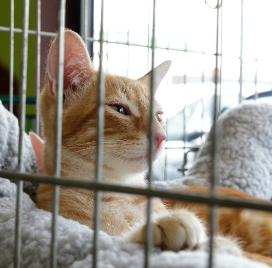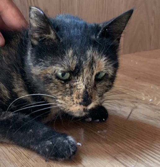 Niza apareció en el parking de un centro comercial, muerta de miedo y hambrienta. Costó cogerla varias horas y al final se la capturó con jaula trampa. Al principio se mostró temerosa pero poco a poco ha ido rompiendo las barreras de sus miedos y ya se muestra como una gata cariñosa y juguetona.