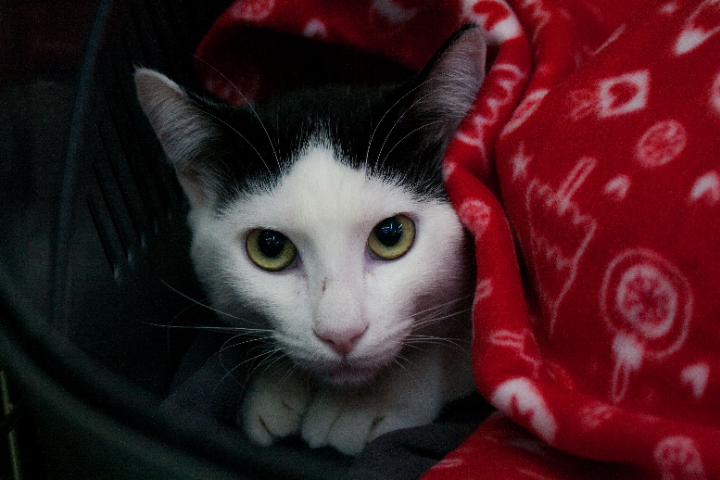 Os presentamos a Freddie. Cogimos a este peque haciendo CES. En principio era un CES normal: coger, castrar y soltar. El peque tiene una particularidad, tiene ataxia. ¿Qué es eso? Es un síntoma, no contagioso, que se le manifiesta porque anda raro (no sabemos el origen, una enfermedad mal curada en el pasado, por ejemplo. Pensad que ha vivido 3 años en la calle...). En el caso de Freddie, sólo se le nota porque anda con las patitas de delante rectas, así que hace vida absolutamente normal. Ha dado positivo a inmunodeficiencia, un positivo débil, que no repercute en absoluto en su vida normal. Freddie se ha mostrado hasta ahora como un gato bueno (ni ataca ni nada de eso, a veces bufa un poquito) pero muy miedoso. Necesitamos acogida para él, preferiblemente con experiencia, que le ayude a evolucionar, ir perdiendo miedos (tiene que descubrir que no todos los seres humanos son malos), etc y, sobre todo, a empezar a ser feliz.