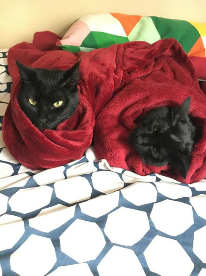 Los hermanitos Haru (blanco y negro) y Nanao (negrito) vivían en la calle, en un lugar en el que corrían muchísimo riesgo de ser atropellados. Son juguetones pero también tranquilotes y algo tímidos al principio.