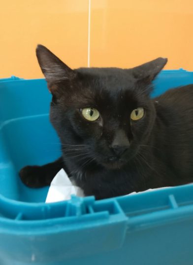 Poli apareció vagando por un polígono industrial cuando estábamos en otro rescate. Se mostró supersociable y además pudimos comprobar que tenía una de sus patitas de atrás en muy mal estado. No le pudimos dejar allí y le llevamos inmediatamente a recibir atención veterinaria. Ya en una casa de acogida, y tras recibir tratamiento, ha recuperado por completo la movilidad de su patita. Es un jovenzuelo muy cariñoso, adora a los humanos, se lleva bien con todo el mundo, le encanta que le cojan y mimen, que le den cariño, caricias... se adapta rápidamente a las casas de acogida y se porta muy bien en el veterinari. Tiene unos mofletes gorditos muy graciosos, es un gato grande y con un cuerpo muy atlético, negro brillante y con ojos verdes preciosos, una minipantera. Ha dado positivo en inmuno, pero las analíticas dicen que la enfermedad está controlada en estos momentos.
