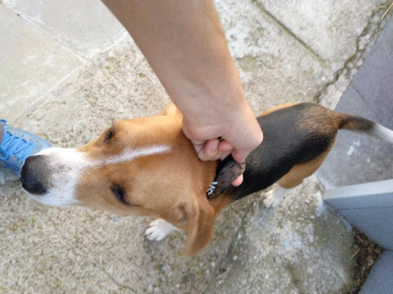 Perro Cachorro encontrado en Becu a unas cuadras de Giannattasio. Hace días está perdido por ahí. Tiene collar verde de tela por eso parece que se hubiera escapado. También lleva un collar tipo cadena