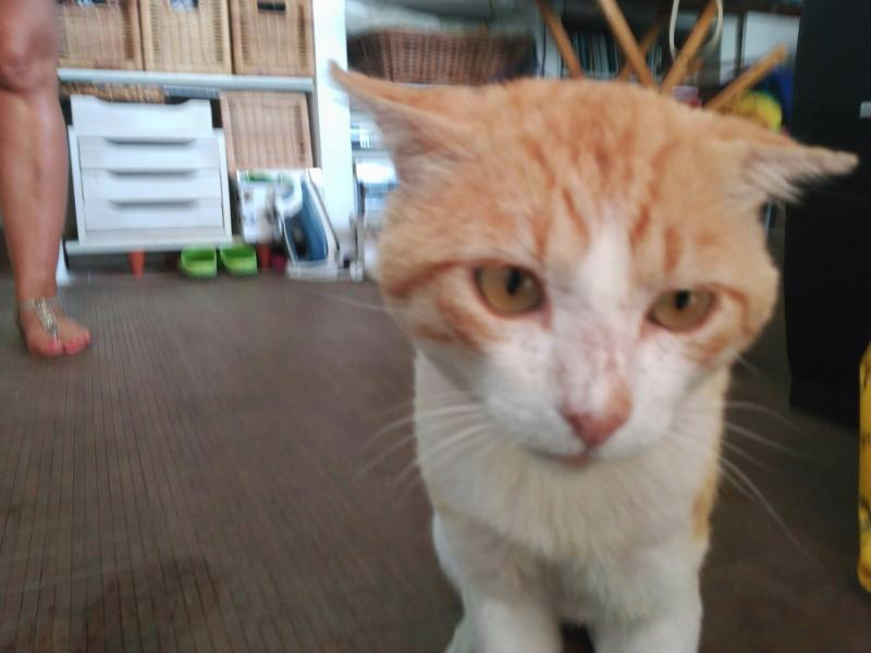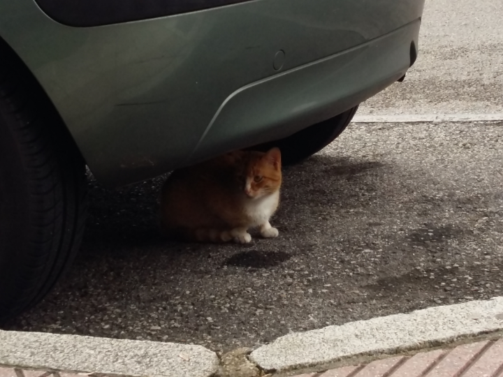Hay un gato blanco y amarillo con ojos verdes por la zona de la glorieta de donde la sidreria molin de la casuca,en La Corredoria,no se si está perdido o abandonado.Las fotos no se ven bien por que se metió debajo de un coche.