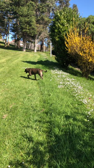 Buen Día, hoy vi este hermoso peludito en el bosque que está al lado De la Villa olímpica de Mosquera, estaba en bolita con mucho frío. Tiene parte de un arnés negro con azul. Les pido compartir por si su familia lo está buscando o alguien quiera acogerlo o ayudarlo.