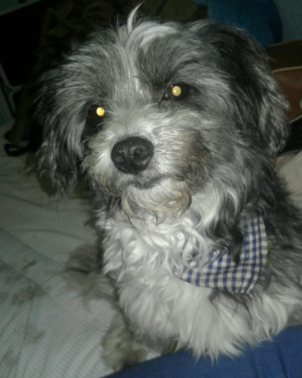 Maltes, macho, talla chica, blanco y negro, collar azul y paliacate con cuadros. Lo encontré el domingo 12 de noviembre por la noche sobre Av. Constitución a la altura del DIF del lago de los lirios.