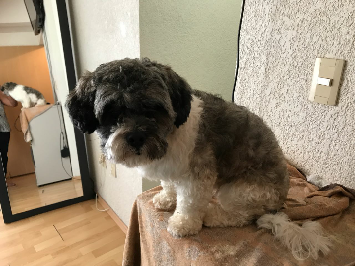 Maltes, macho, talla chica, color gris con blanco sin collar. Lo encontre el miercoles 22 de noviembre por la tarde sobre Av. Hidalgo cerca de los gringos.