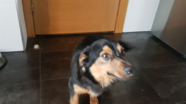 Muy sociable tanto con perros como con humanos, tiene collar y collar antipulgas, se encuentra en la zona del cuvi. La primera vez que fue visto iba acompañado de una perrita pequeña con un collar muy parecido. Busca el cariño de la gente lo que nos lleva a pensar que puede estar perdido