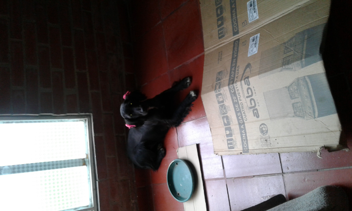 Es una perrita negra tiene apariencia de coker esta muy arreglada tiene moñitos rosados y esta en celo fue encontrada el dia 15 de febrero sobre las 11 de la mañana