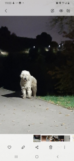 Está este perro por la Pista Finlandesa de Oviedo,no sé si estará perdido o anandonado.
