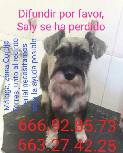 Se perdió el sábado 31 de marzo en el barrio Cortijo de Torres (Málaga), cerca del recinto ferial. No sabemos nada de ella. Alguien tiene que haberla visto o cogido. Por favor ayuda! Sus dueños son de Madrid.