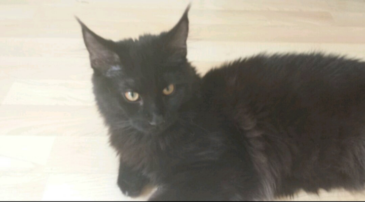 Feli tiene 7 años, es blanco con manchas negras, tiene una mancha negra en forma de corazon en su costado derecho, no tiene cola, esta castrado, y tiene las orejas paradas