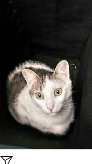 Gato de 2 años, pelo blanco con manchas como de gato montés en el lomo. Se llama Sullivan (Sully), lleva un collqr verde y otro de parásitos. Es muy sociable, de tamaño mediano