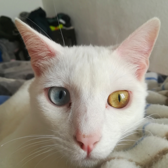 Gato blanclo grande, ojos de dos colores, azul y amarillo, no ve bien por el ojo azul y también está sordo de esa oreja, no se orienta bien y da vueltas sobre sí mismo, agradeceríamos cualquier notificación