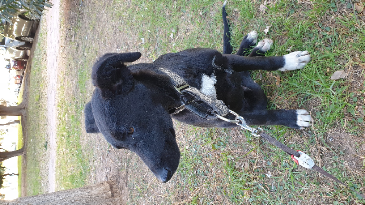 Anoche perdí mi perro Dustin, de 9 meses. Es negro con las patas y el pecho blancos, asi como la punta de la cola. Es un cruce de Podenco.