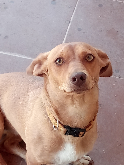 Pequeña, cachorro hembra color marrón de pelo corto, telefono apuntado detrás del collar, perdida en Ranxos de bonany, municipios más cerca Valldossera y Bonany, Can Llenas