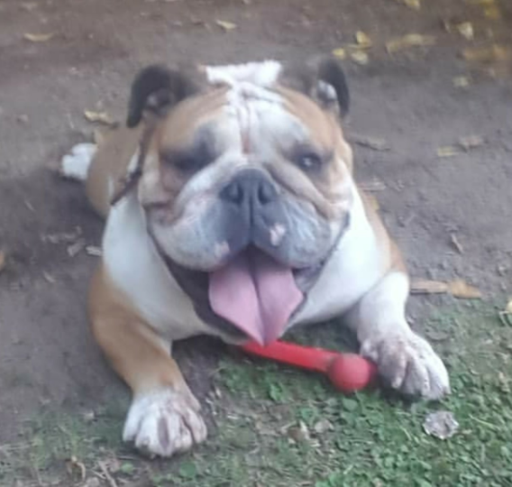 No lleva collar y tiene los dientes sucios, es un perrito viejito pequeño, sus ojos presentan principios de cataratas.