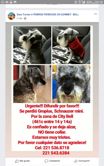 Se perdio el dia de hoy a las 9 de la mañana aproximadamente