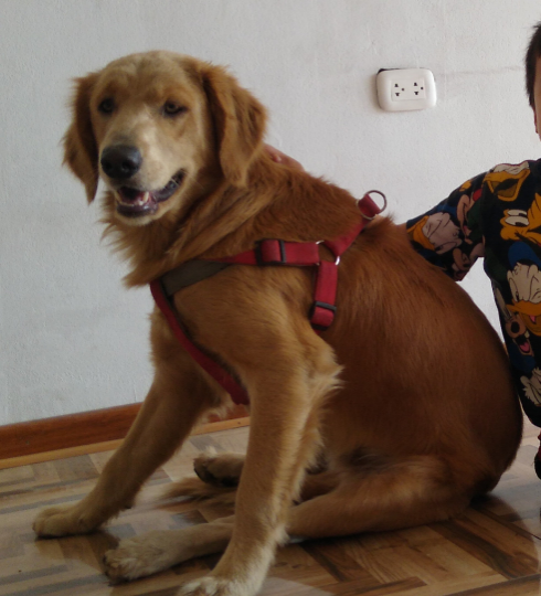 Mi perro se llama bartolomeo y se perdió en el cercado de lima chacra rios urbanización la trinidad c rca al ex coliceo amauta es de raza Golden cruzado tenia puesto un arnes rojo y una cuellera su lengua tiene manchas negras tiene un año y un mes