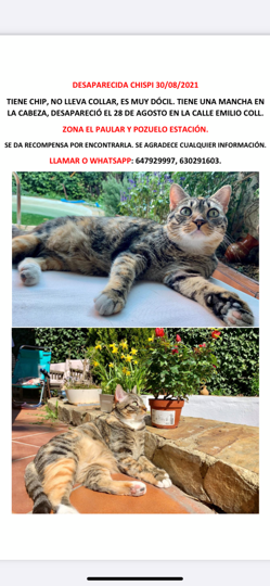 Ella es negra es mi gatita es carey su pelaje es marron, negro y naranja con blanco, y es hembra porfavor si la han visto porfavor diganme ayudenme a encontrarla.