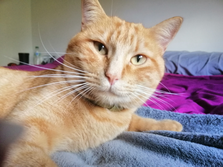 Descripción: es hembra, es multicolor, tiene ojos amarillos, es muy cariñosa, tiene a veces la nariz mojada.