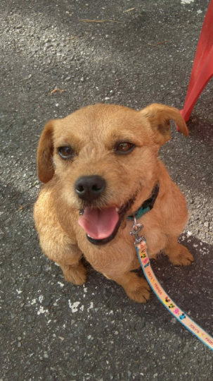 Perra de tamaño mediano, de color canela y de carácter dócil, atiende por el nombre de Lola.