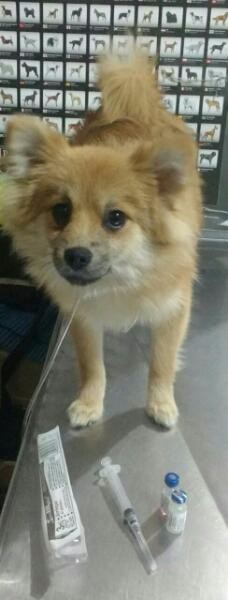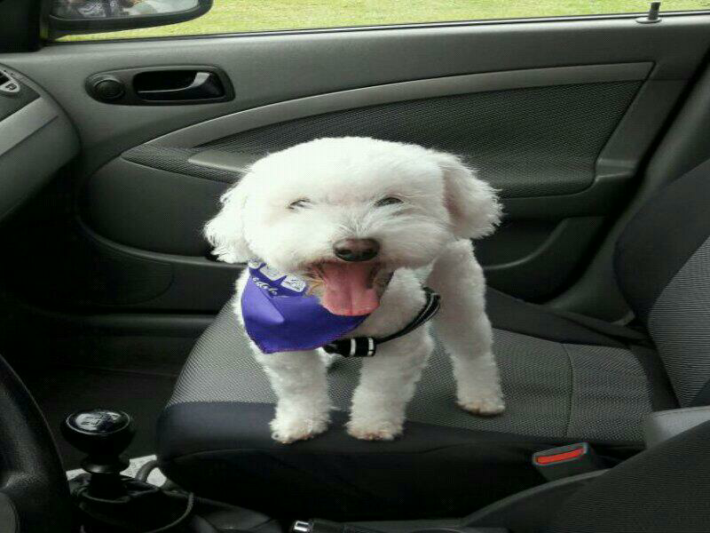 Responde al nombre de Doggy. Tiene 13 años. Por lo viejito, necesita de varios medicamentos. Se encuentra en un tratamiento. Es blanco, tiene solo un par de dientes. Perdido el domingo. Tiene bufanda morada. Cola corta